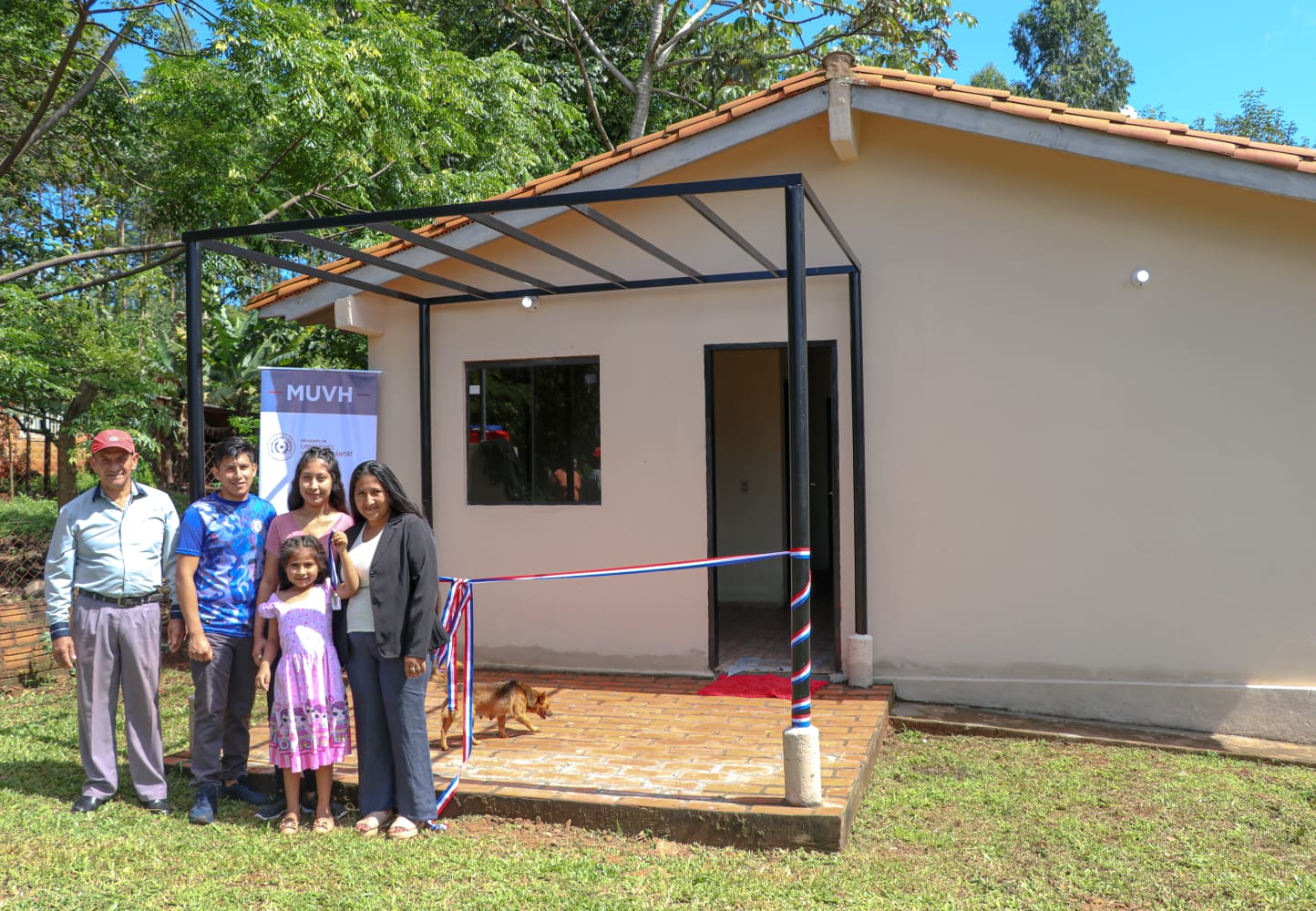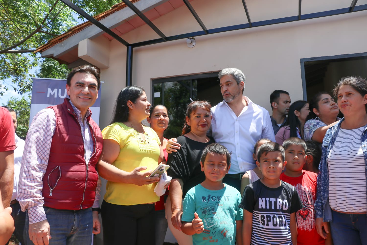 Unas 43 familias del distrito de Ñacunday, (Alto Paraná), recibieron las llaves de su casa propia de manos del presidente de la República, Mario Abdo Benitez, y el ministro Carlos Pereira Olmedo. Se trata de un total de 200 personas de escasos recuros, del Proyecto Comisión de Construcción de Viviendas Urbanas de Puerto Paranambú, que fueron beneficiadas con esta entrega.