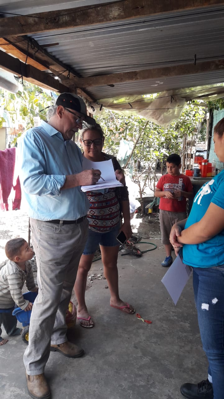 En el marco del Proyecto San Blas, de Mariano Roque Alonso, que beneficiará a personas que hoy residen en varios refugios provisorios, funcionarios de la Coordinación Social, del Programa Che Tapýi, realizan jornadas de trabajos con las familias asentadas en la franja de Dominio de Tren de Cercanías, postulantes a acceder a una de las 600 soluciones habitacionales ejecutadas en el lugar.