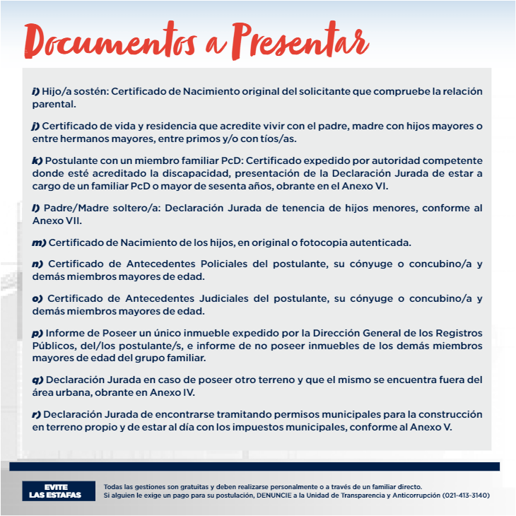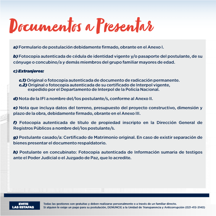 INGRESÁ AL SIGUIENTE ENLACE PARA DESCARGAR LOS REQUISITOS https://www.muvh.gov.py/mivivienda