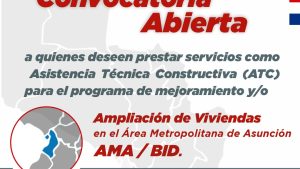 El Ministerio de Urbanismo, Vivienda y Hábitat (MUVH), comunica que se encuentra abierta la convocatoria para todos … Sigue leyendo El MUVH habilita las postulaciones para Asistencia Técnica Constructiva del Proyecto AMA/BID