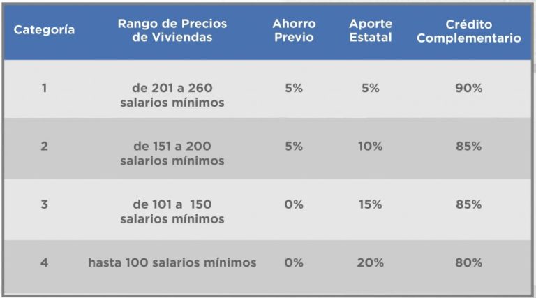 La propuesta está dirigida a familias con ingresos desde 1,5 hasta 7 salarios mínimos, que desean adquirir su primera vivienda. Las mismas deben estar terminadas y pueden estar ubicadas en zonas urbanas de todo el territorio Nacional.