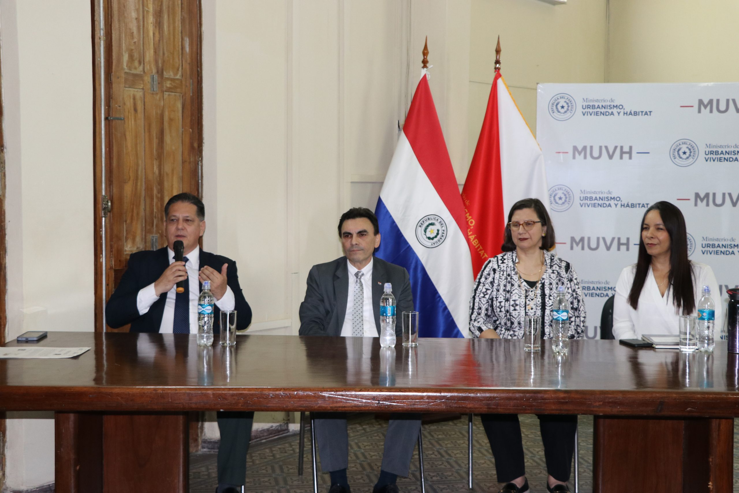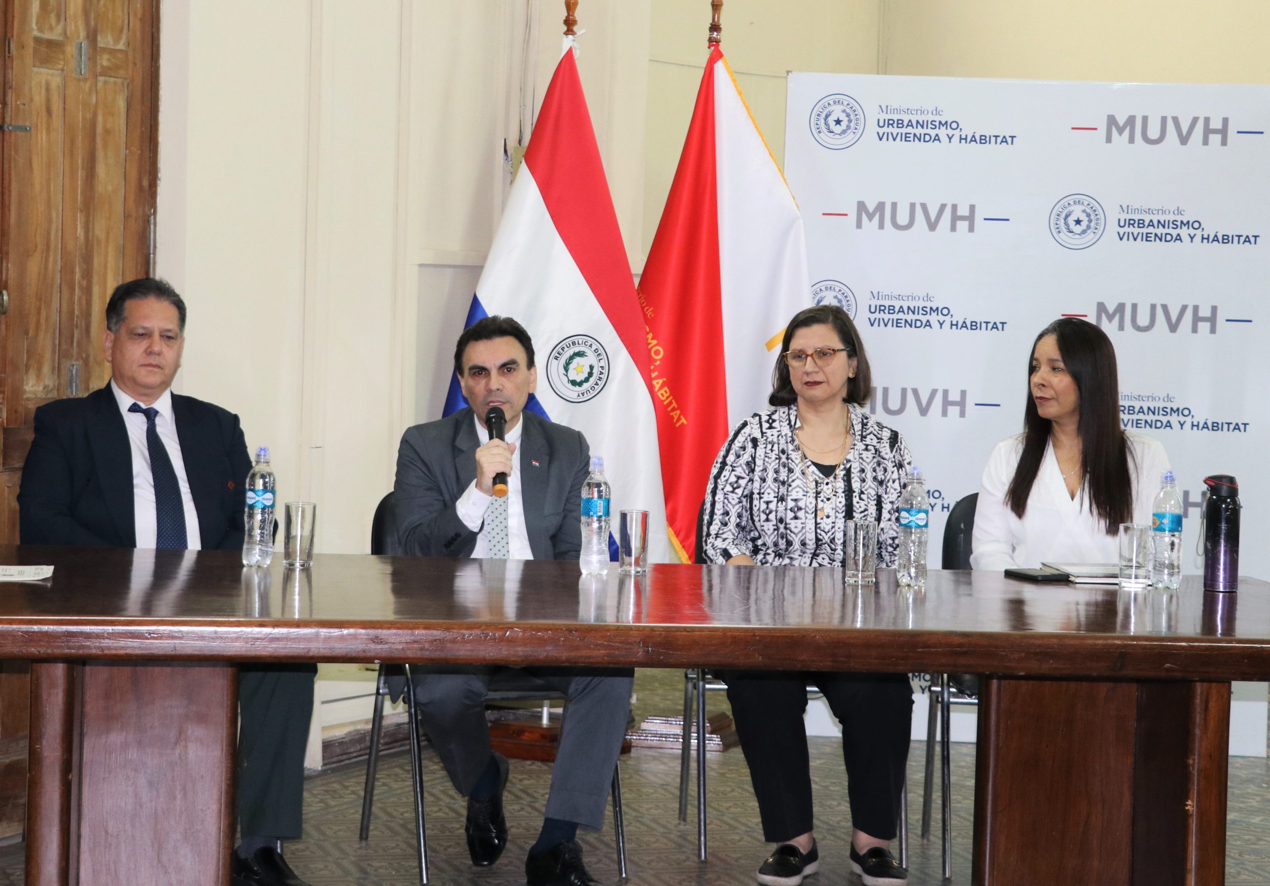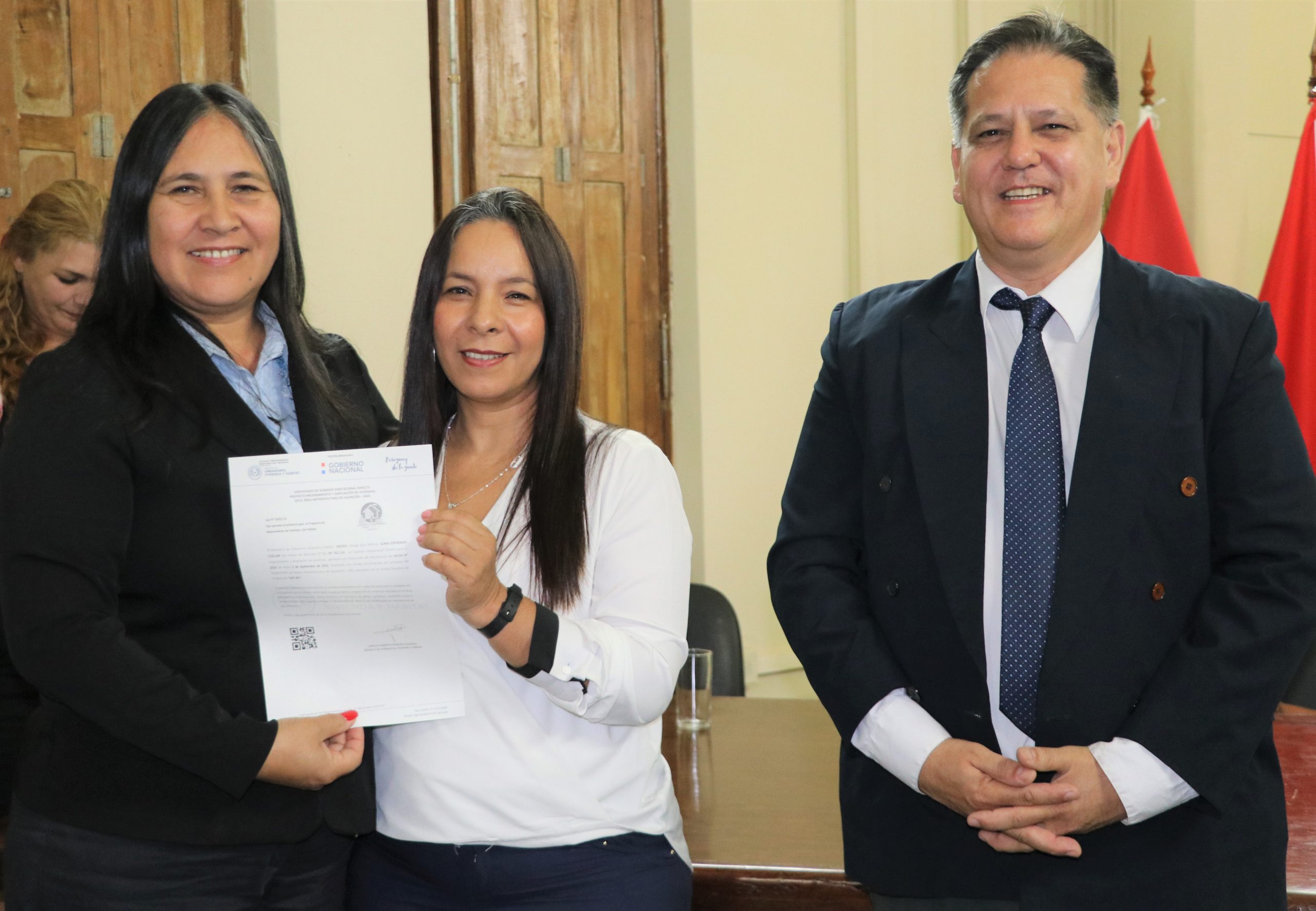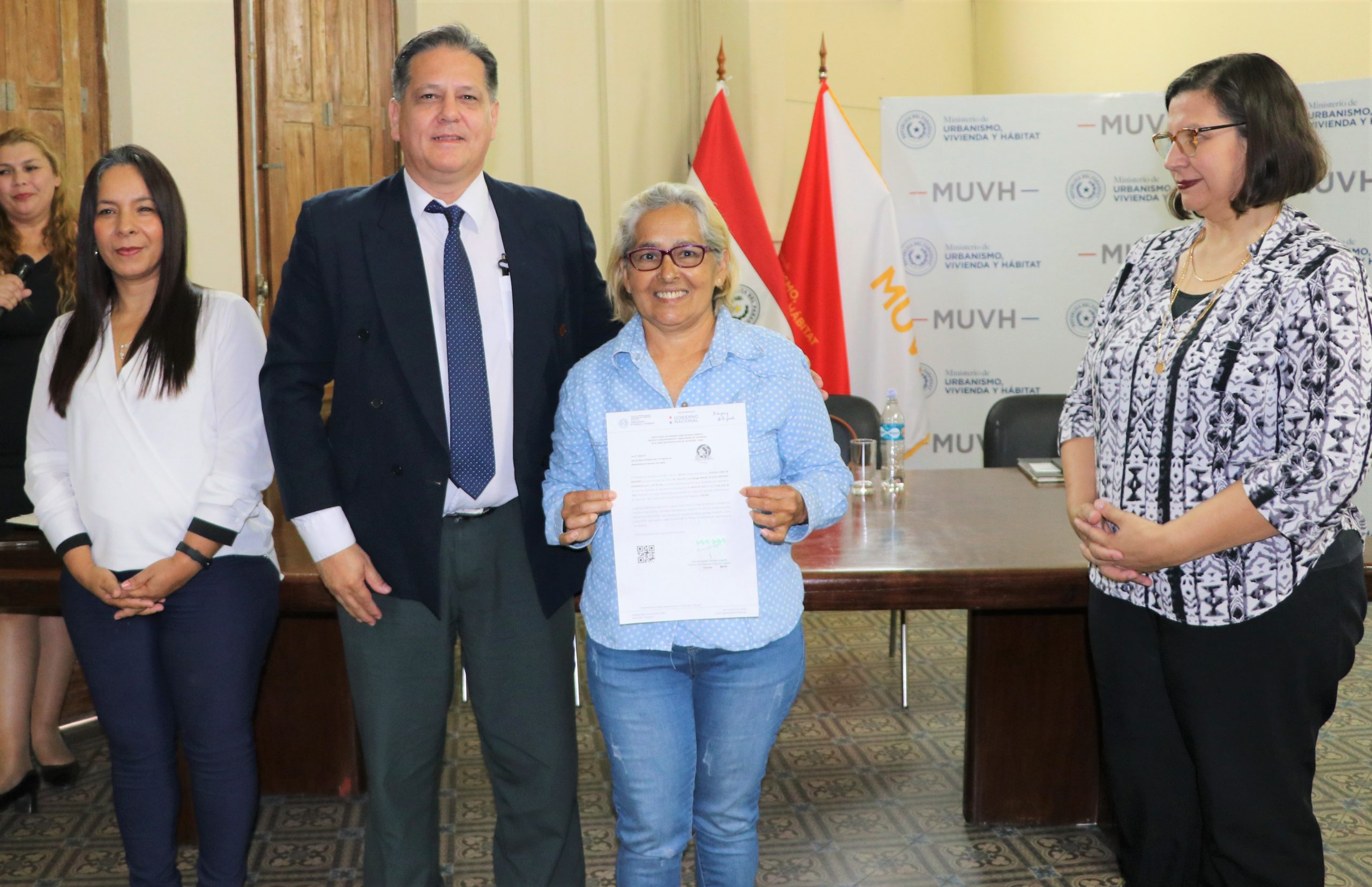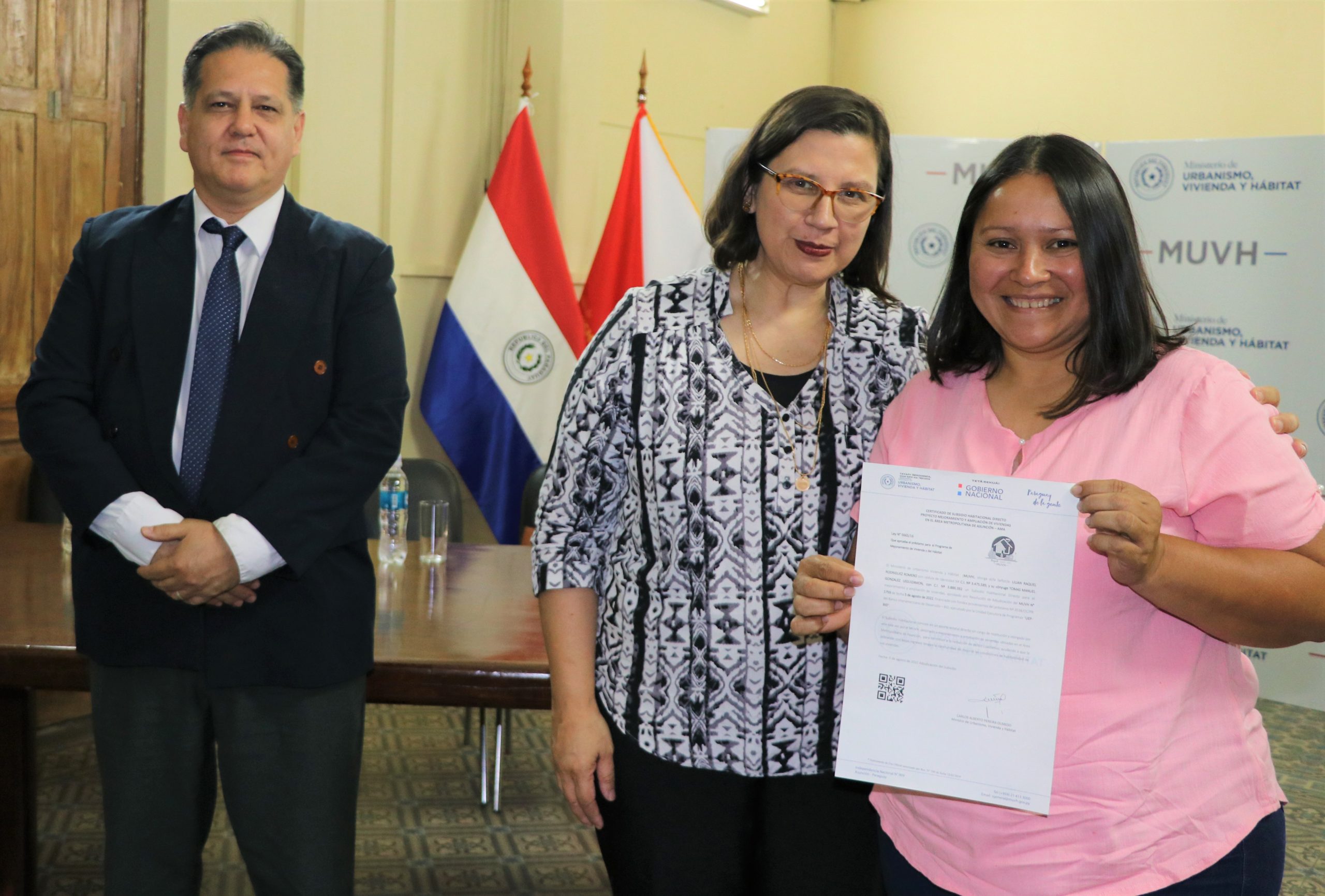 El acto de entrega estuvo presidido por el ministro de Urbanismo, Vivienda y Hábitat, Carlos Pereira Olmedo. También estuvieron presentes Sandra Ruiz Díaz Ramírez, directora del Proyecto AMA-BID; María Gloria Páez, directora general de la Unidad Ejecutora del BID; y Alberto Brizuela, representante de la Cooperativa Capiatá Ltda.