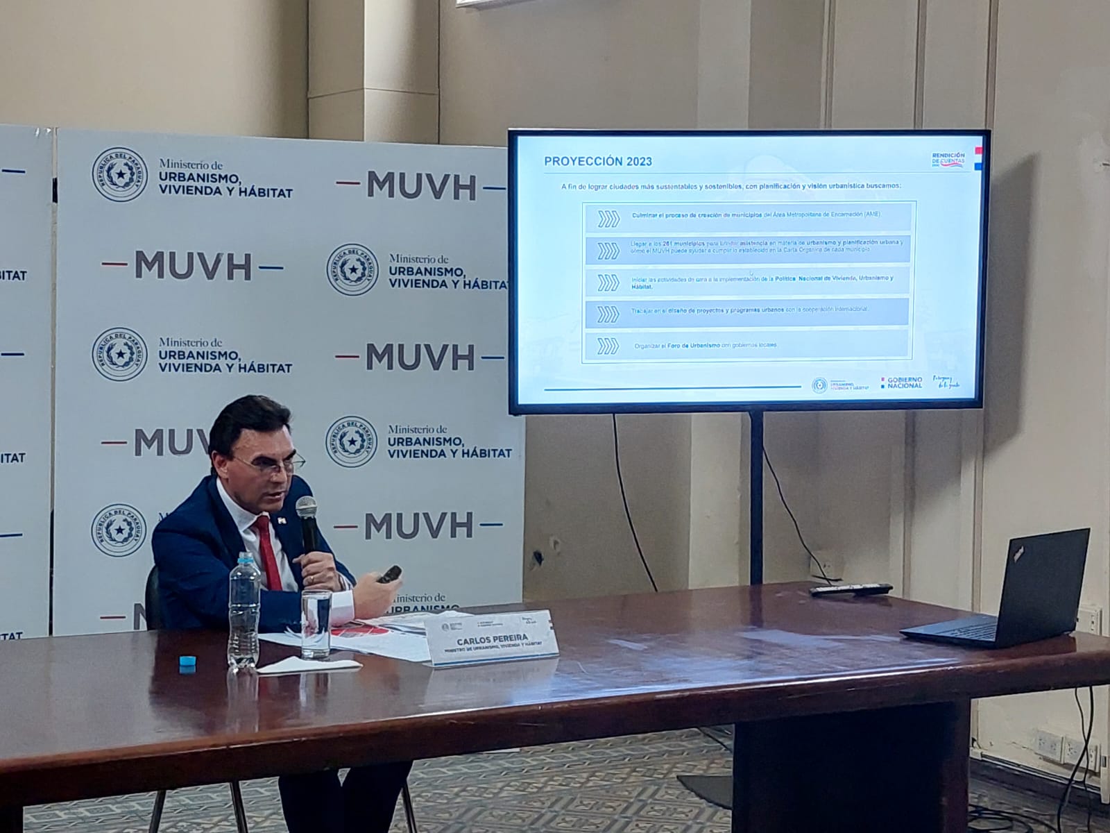 El día de hoy el ministro de Urbanismo, Vivienda y Hábitat (MUVH), Carlos Pereira Olmedo, presentó el informe anual de Rendición de Cuentas al Ciudadano, correspondiente al ejercicio fiscal 2022, en concordancia y cumplimiento de las disposiciones emanadas de la Secretaría Nacional Anticorrupción del Paraguay (Senac), en materia de transparencia.