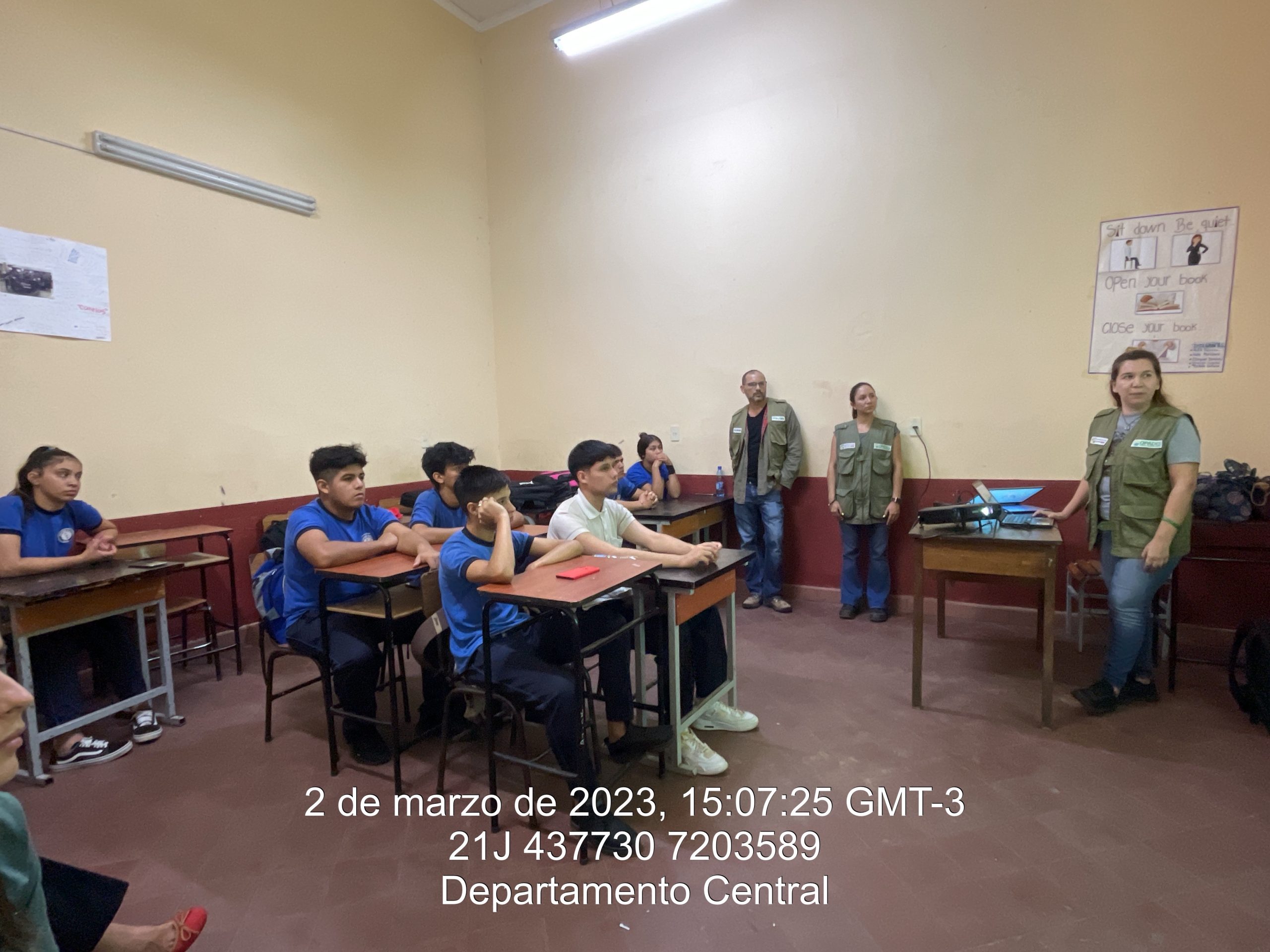 Jóvenes del Colegio Nacional Vicepresidente Sánchez participan de una serie de talleres de formación en educación ambiental formal, en el marco de las actividades ambientales y sanitarias del Proyecto de Mejoramiento Integral del Barrio Chacarita Alta, desarrollado por el Ministerio de Urbanismo, Vivienda y Hábitat (MUVH).
