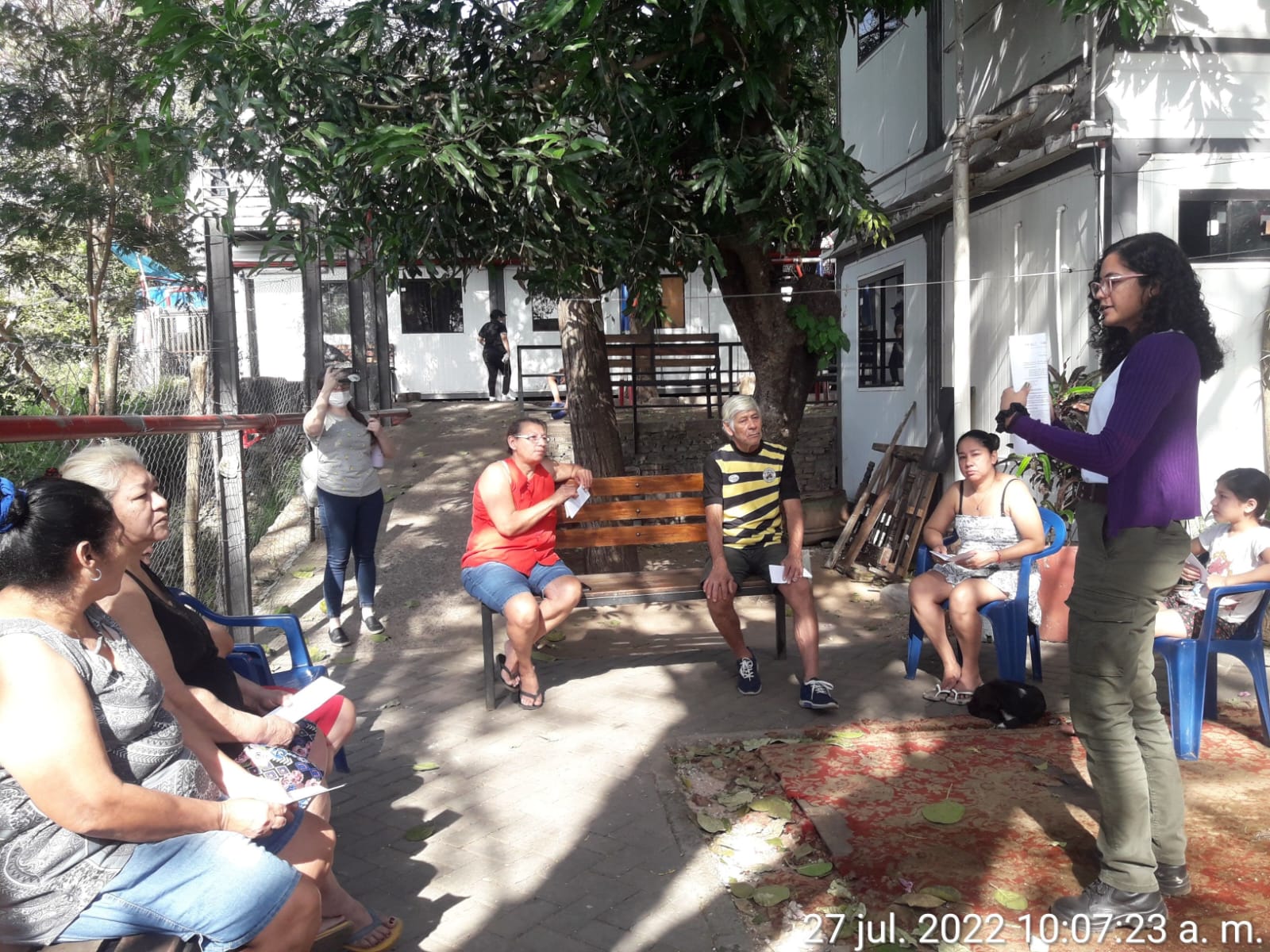 El equipo de trabajo social acompaña a las familias brindando asistencia en casos puntuales, y ofrece respuestas a demandas sanitarias, de salud y de convivencia en comunidad de vecinos que temporalmente habita el lugar, en tanto se realizan las obras de reparación, demolición y construcción de casas.