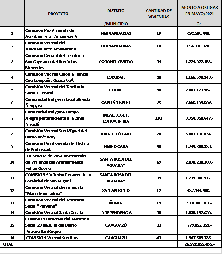 - Entrega de Viviendas