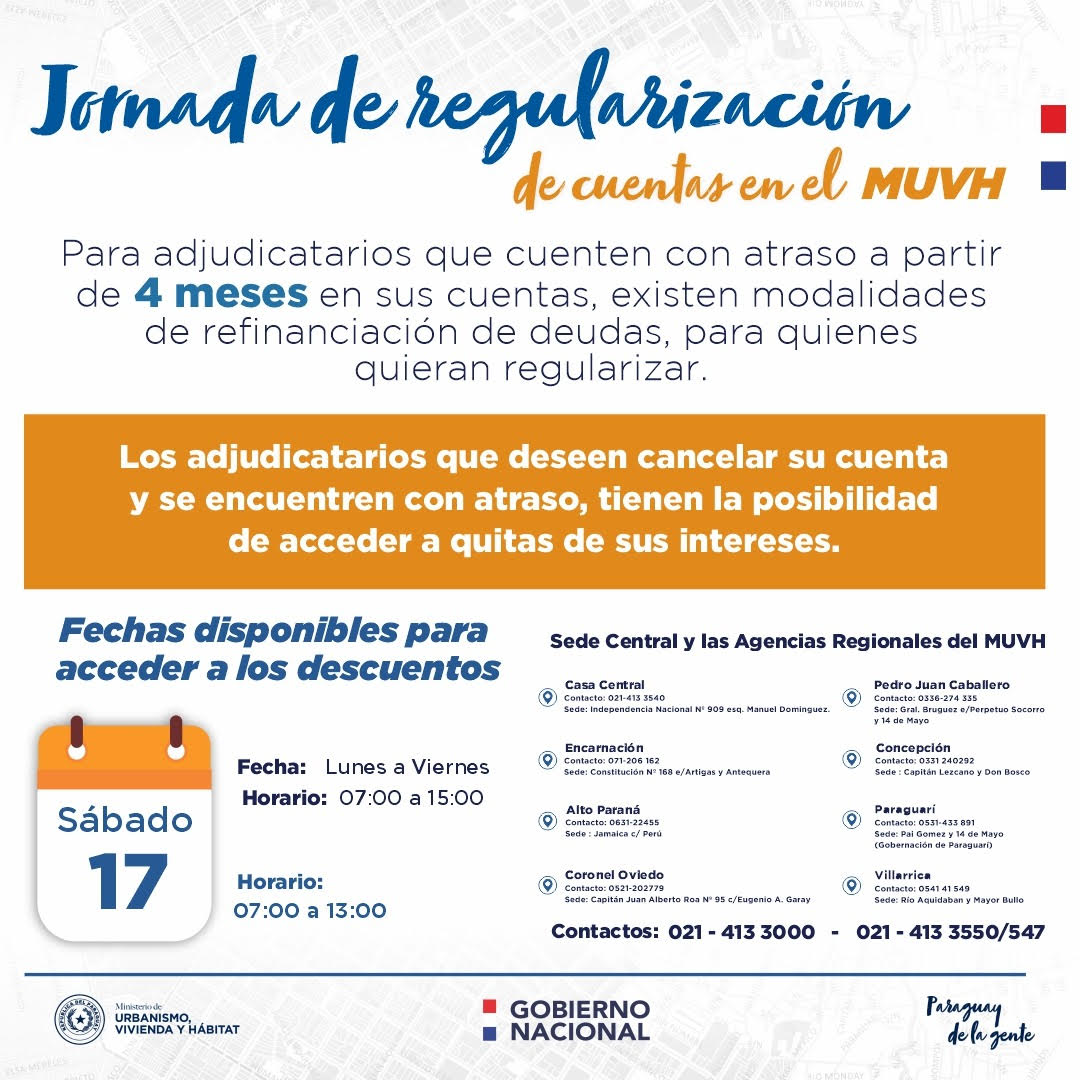 El Ministerio de Urbanismo, Vivienda y Hábitat (MUVH), aplica quita de intereses a los adjudicatarios que deseen…